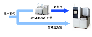 本注射器是用於將StayClean注入切削水的專用裝置。 其不受切削水流量變化的影響,通過對1,000倍以上的稀釋濃度進行高精度的管理,能達到降低成本及獲得高品質。